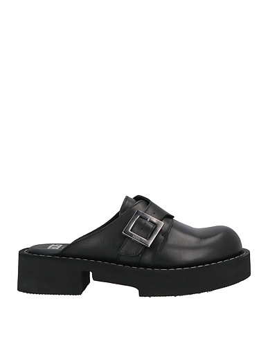 mules, leather, brand logo, solid color, leather lining, round toe, square heel, rubber heel, rubber sole, contains non-textile parts of animal origin