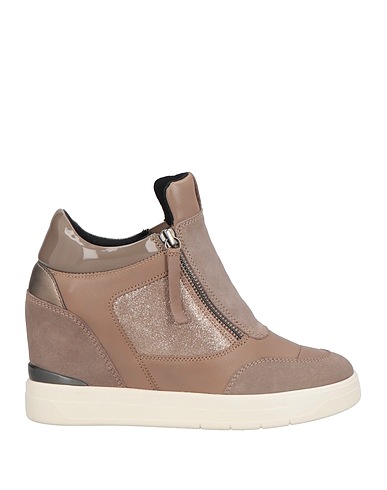 low-top sneakers, suede, synthetic material, solid color with appliqués, glittered, brand logo, zipper fastening, elasticized inserts, round toe, wedge, rubber cleated sole, leather lining, contains non-textile parts of animal origin