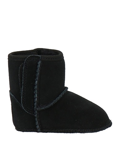 padded ankle boots, suede, solid color, brand logo, plush fabric inner, velcro fastening, round toe, flat, rubber cleated sole, contains non-textile parts of animal origin