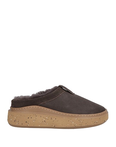 mules, leather, brand logo, solid color, lined in shearling, round toe, flat, rubber sole, contains non-textile parts of animal origin