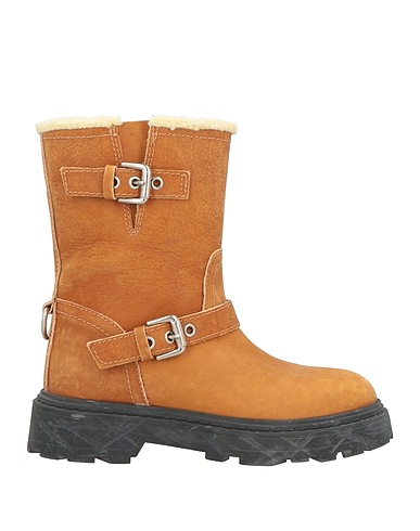 biker ankle boots, leather, faded, solid color, embellished, sherpa interior, buckle fastening, round toe, square heel, lug sole, contains non-textile parts of animal origin