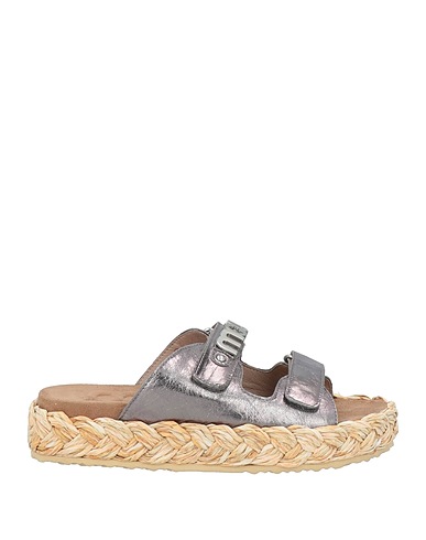 espadrille sandals, leather, metallic, solid color with appliqués, brand logo, embellished, leather lining, velcro fastening, round toe, flat, flatform, contains non-textile parts of animal origin