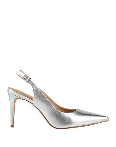 slingback pumps, leather, metallic, solid color, no appliqués, buckle fastening, pointed toe, stiletto heel, leather sole, leather lining, contains non-textile parts of animal origin, go extra glam with chic party accessories for your next event or night out