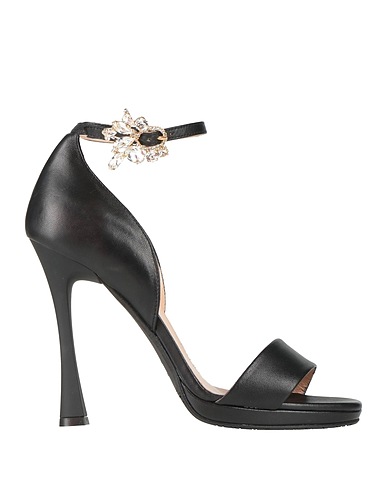 ankle strap sandals, leather, solid color with appliqués, crystals, leather lining, buckle-fastening ankle strap, round toe, stiletto heel, rubber sole, contains non-textile parts of animal origin