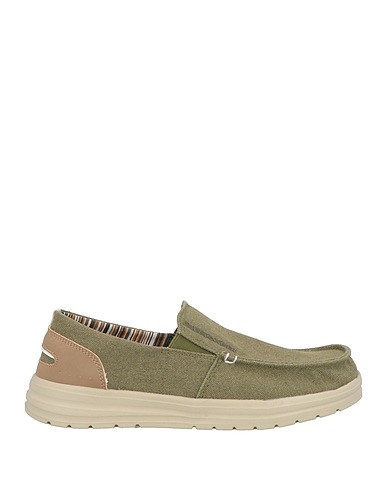 loafers, canvas, solid color, brand logo, fully lined, elasticized inserts, round toe, flat, rubber cleated sole