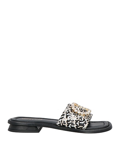 slide sandals, leather, metallic, multicolor, crystals, leather lining, square toe, flat, leather sole, contains non-textile parts of animal origin