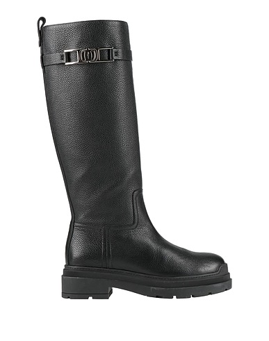 riding boots, pebbled-leather, solid color, brand logo, leather lining, zipper fastening, round toe, square heel, rubber sole, contains non-textile parts of animal origin