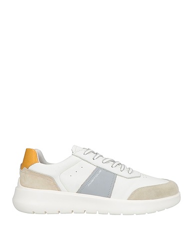 low-top sneakers, leather, suede, perforated, two-tone, brand logo, detachable application, leather lining, lace-up, round toe, rubber cleated sole, contains non-textile parts of animal origin