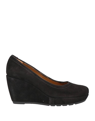 pumps, suede, solid color, no appliqués, leather lining, round toe, wedge heel, covered wedge, rubber cleated sole, contains non-textile parts of animal origin
