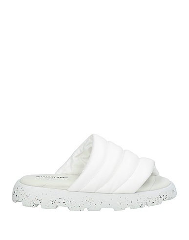 slide sandals, coated fabric, quilted, solid color, platform, technical fabric inner, round toe, wedge heel, rubber sole