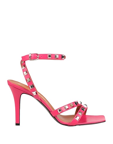 ankle strap sandals, leather, solid color with appliqués, studs, leather lining, buckle-fastening ankle strap, square toe, spike heel, leather sole, contains non-textile parts of animal origin