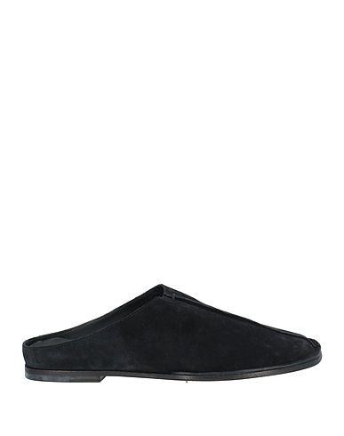 mules, suede, solid color, no appliqués, leather lining, square toe, flat, leather sole, contains non-textile parts of animal origin