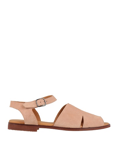 ankle strap sandals, suede, solid color, no appliqués, leather lining, buckle-fastening ankle strap, round toe, flat, leather/rubber sole, contains non-textile parts of animal origin