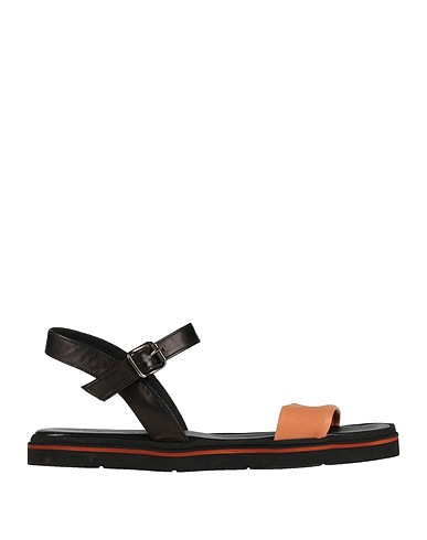 ankle strap sandals, leather, two-tone, no appliqués, leather lining, buckle-fastening ankle strap, round toe, flat, rubber sole, contains non-textile parts of animal origin