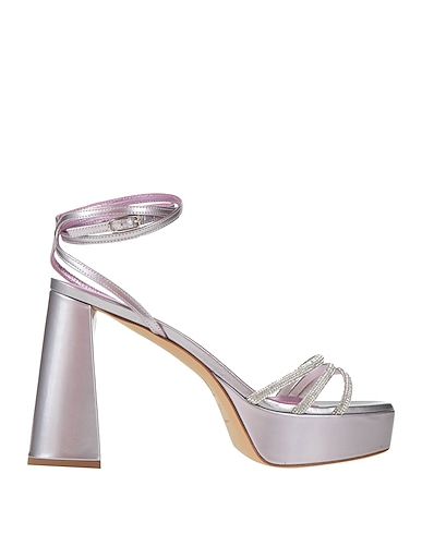 ankle strap sandals, leather, metallic, solid color with appliqués, crystals, leather lining, ties at ankle, round toe, square heel, covered heel, leather sole, contains non-textile parts of animal origin