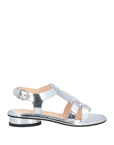ankle strap sandals, leather, metallic, solid color, no appliqués, leather lining, buckle fastening, round toe, geometric heel, rubber cleated sole, contains non-textile parts of animal origin