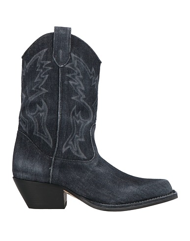 cowboy ankle boots, denim, faded, solid color, no appliqués, leather lining, pointed toe, cuban heel, leather sole, contains non-textile parts of animal origin