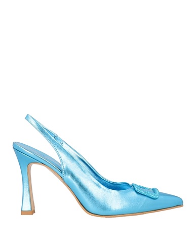 slingback pumps, coated fabric, metallic, solid color, glittered, fully lined, elasticized inserts, pointed toe, spool heel, covered heel, rubber sole