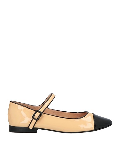 mary jane flats, patent leather, two-tone, no appliqués, leather lining, buckle fastening, round toe, flat, rubber sole, contains non-textile parts of animal origin