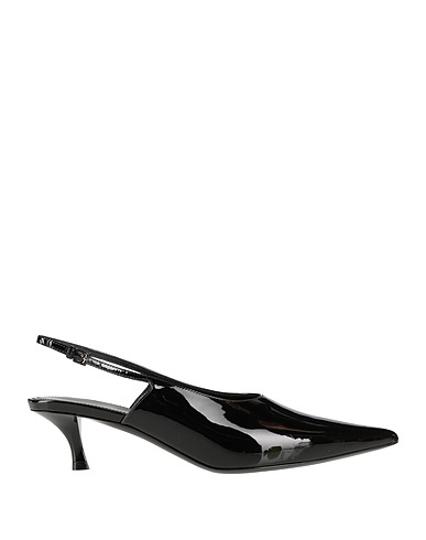 slingback pumps, leather, solid color, no appliqués, leather lining, buckle fastening, pointed toe, cone heel, leather sole, contains non-textile parts of animal origin