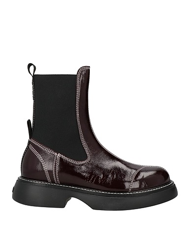chunky boots, coated fabric, piped trims, solid color, fabric inner, round toe, square heel, rubber heel, rubber sole, small sized