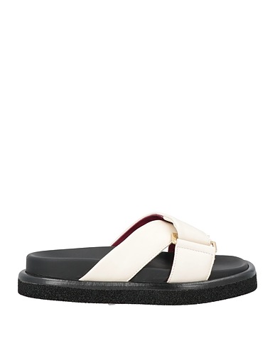 sandals, leather, solid color, no appliqués, leather lining, round toe, flat, rubber sole, contains non-textile parts of animal origin