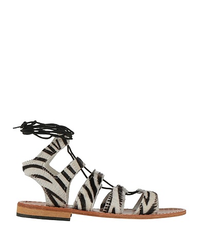 sandals, calf hair, zebra-print, no appliqués, leather lining, lace-up, round toe, flat, leather/rubber sole, contains non-textile parts of animal origin