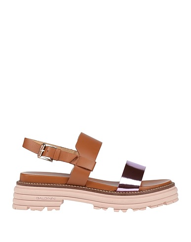 ankle strap sandals, leather, metallic, two-tone, no appliqués, leather lining, buckle fastening, round toe, square heel, lug sole, contains non-textile parts of animal origin