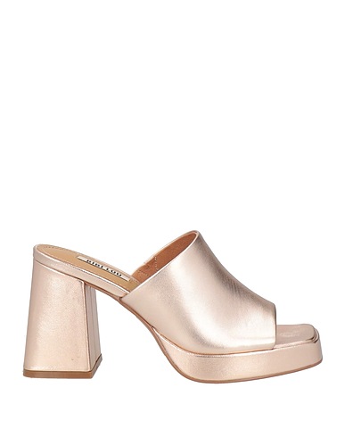 slide sandals, leather, metallic, solid color, no appliqués, leather lining, square toe, square heel, rubber cleated sole, contains non-textile parts of animal origin
