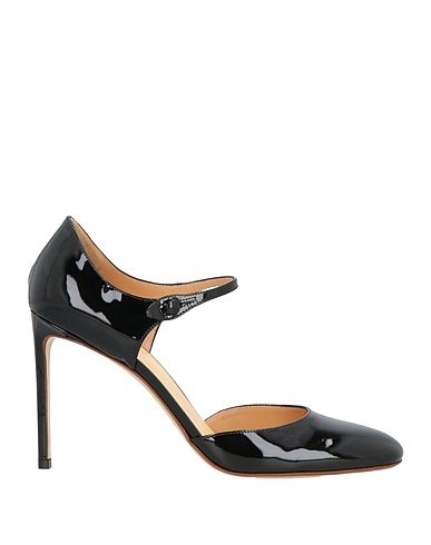 mary jane pumps, patent leather, solid color, no appliqués, leather lining, ties at ankle, round toe, stiletto heel, covered heel, leather sole, contains non-textile parts of animal origin