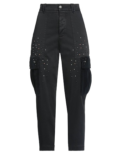 tapered pants, woven, velvet, solid color with appliqués, studs, high waisted, belt loops, regular fit, 1 button, concealed button fastenings, multipockets, stretch, machine wash, do not tumble dry