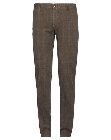 chino pants, woven, glen plaid, brand logo, low waisted, belt loops, tapered leg, slim fit, zipper fastening, 1 button, slit pockets, welt pockets, machine wash or dry clean, do not bleach, do not tumble dry, contains non-textile parts of animal origin