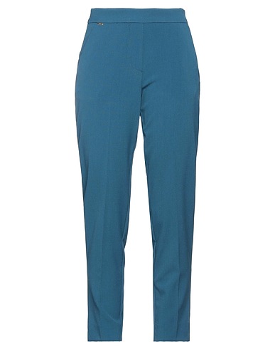 tapered pants, crepe, stretchy fabric, solid color, brand logo, high waisted, regular fit, zipper fastening, side slit hemline, slit pockets, machine wash or dry clean, do not bleach, do not tumble dry