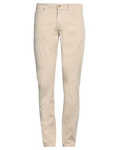 plain weave, brand logo, solid color, mid rise, belt loops, straight leg, regular fit, unlined, 1 button, zipper closure, five pockets, stretch, 5 pocket