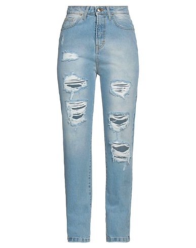 straight-leg jeans, denim, torn fabric, solid color, brand logo, light wash, high waisted, straight leg, regular fit, zipper fastening, 1 button, pockets