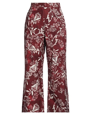 plain weave, no appliqués, floral design, high waisted, straight leg, regular fit, zipper closure, hook-and-eye closure, multipockets, pants