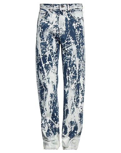 denim, stained effect, brand logo, two-tone, medium wash, high waisted, belt loops, straight leg, regular fit, zipper closure, 1 button, five pockets, straight-leg model