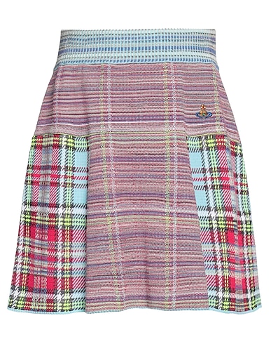 knitted, lightweight knit, brand logo, tartan pattern, unlined, elasticized, no pockets, flared skirt