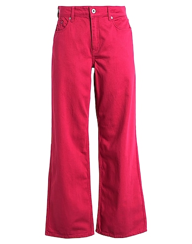 straight-leg jeans, denim, solid color, brand logo, colored wash, mid rise, belt loops, wide leg, relaxed fit, zipper fastening, five pockets