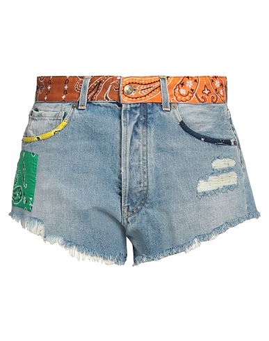 shorts, denim, distressed, paisley-print, no appliqués, medium wash, high waisted, regular fit, button fastenings, five pockets, planning a weekend getaway or beach vacation? this is the effortless summer style you need