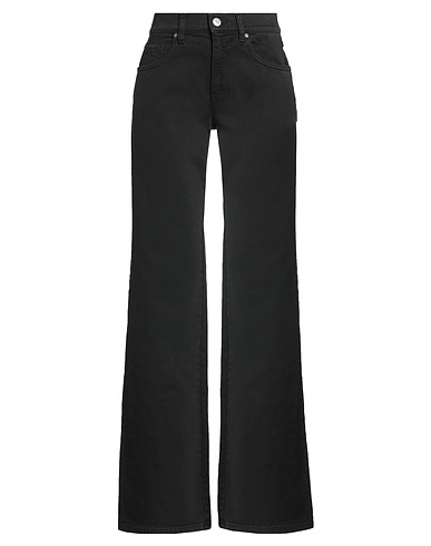flared jeans, denim, solid color, brand logo, colored wash, high waisted, belt loops, regular fit, zipper fastening, 1 button, pockets, machine wash or dry clean, do not bleach, do not tumble dry