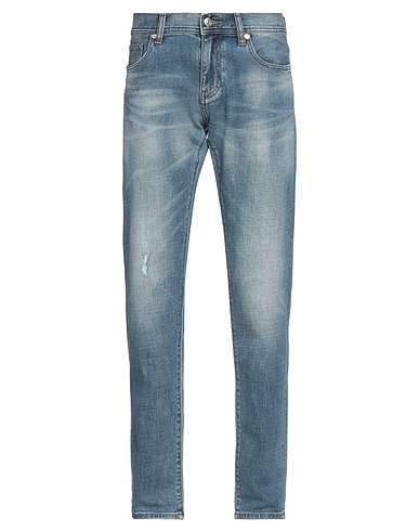 denim, faded, brand logo, solid color, medium wash, low waisted, belt loops, tapered leg, slim-leg pants, button closing, five pockets, skinny model