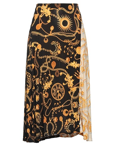 flared skirt, synthetic jersey, multicolor, gathered, elasticized waist, unlined, front slit, without pockets, stretch, machine wash or dry clean, do not bleach, do not tumble dry