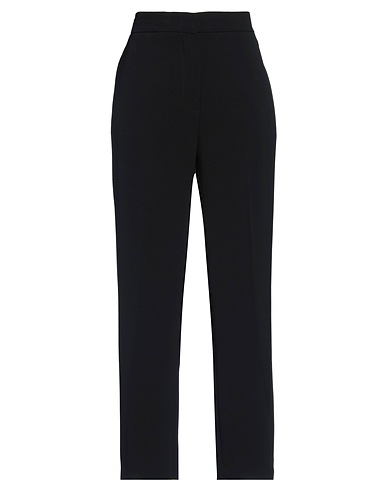 crepe, brand logo, solid color, high waisted, straight leg, regular fit, zipper closure, hook-and-eye closure, multipockets, stretch, tailored