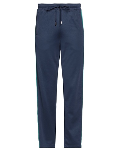 jersey, side seam stripes, brand logo, solid color with appliqués, high waisted, elasticized waist, straight leg, regular fit, drawstring closure, multipockets, track pants