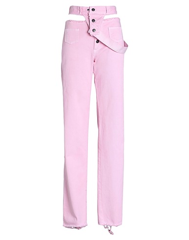 gabardine, tulle, detachable application, solid color, mid rise, regular fit, button fastenings, fringed hem, multipockets, hand wash or dry clean, do not bleach, do not tumble dry, straight-leg pants