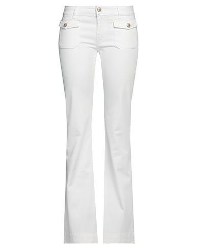 gabardine, no appliqués, solid color, mid rise, flared cut, regular fit, zipper fastening, 1 button, multipockets, stretch, pants