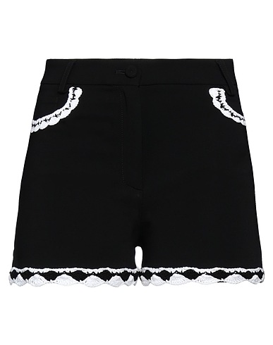 shorts, crepe, solid color with appliqués, lace trims, high waisted, belt loops, zipper fastening, 1 button, slit pockets, stretch, dry clean, do not bleach, do not tumble dry