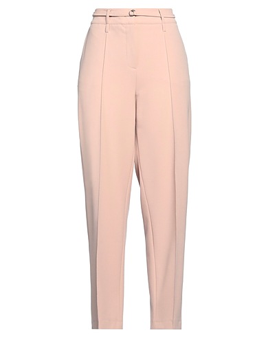 tapered pants, crepe, belt, solid color, high waisted, belt loops, relaxed fit, hook fastenings, zipper fastening, multipockets, stretch
