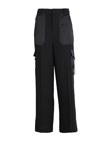 satin, crepe, no appliqués, solid color, high waisted, belt loops, wide leg, regular fit, hook fastenings, zipper fastening, multipockets, cargo
